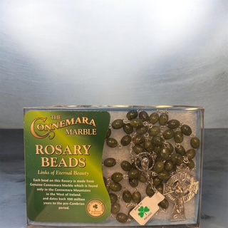 Each bead on the rosary is made from genuine Connemara Marble found only in the West of Ireland. Each piece of this green, natural gemstone is totally unique.