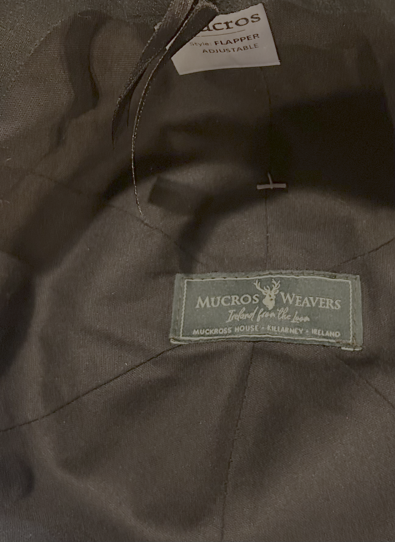Handcrafted by Mucros Weavers at Muckross House , Killarney, County Kerry, Ireland, where master weavers use only the finest yarns on Hattersly looms that are almost 200 years old. This tweed hat is made from 100% wool.