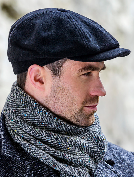 This 100% Wool Mucros Weavers Driving Cap – Black is a classic 8-piece cap with button on top. Made famous by the T.V. series Peaky Blinders, this tweed cap is the perfect combination of style, function and craftsmanship. With its 100% cotton lining this driving cap is perfect hat for cooler conditions while providing added comfort. Handcrafted by Mucros Weavers at Muckross House , Killarney, County Kerry, Ireland.