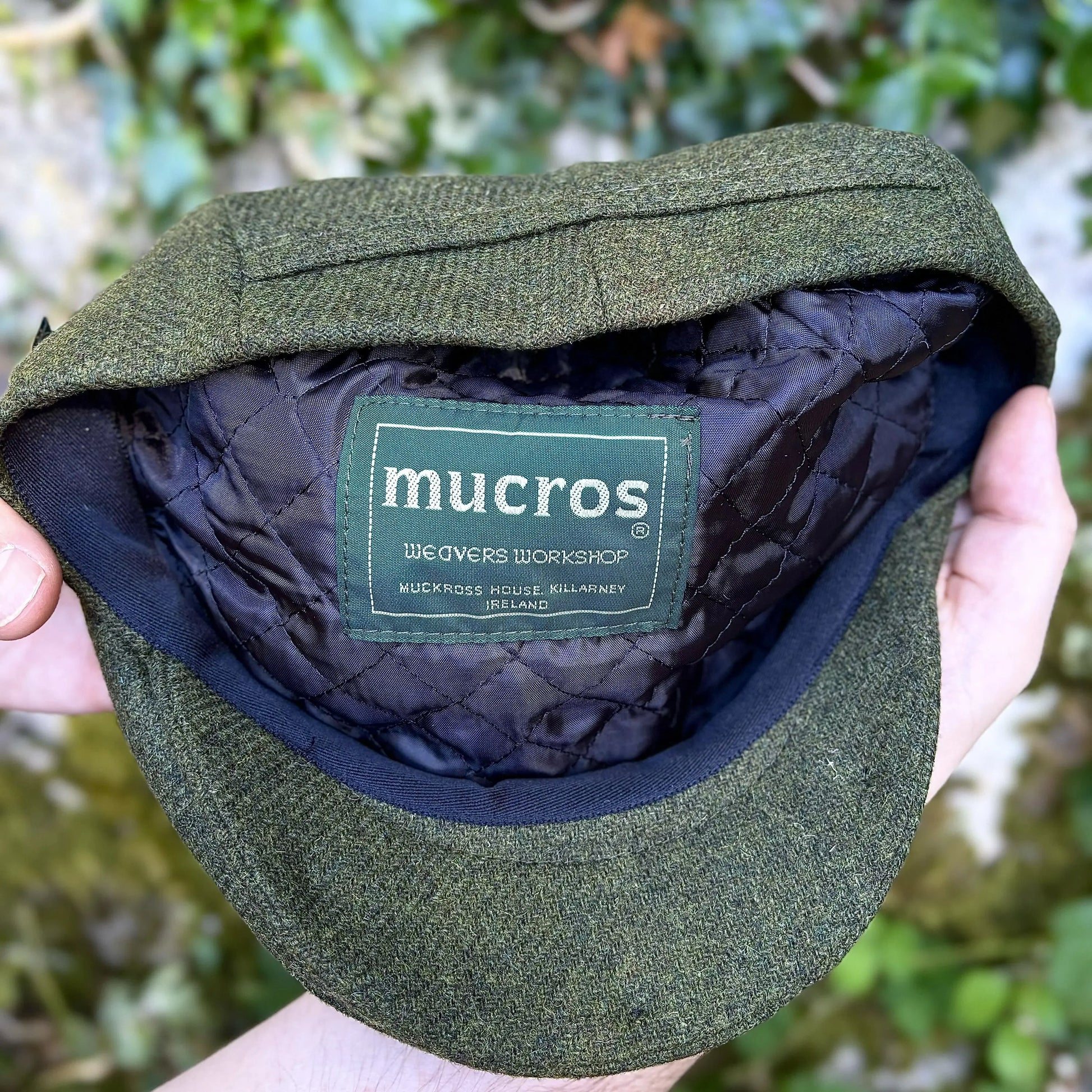 The 100% Wool Mucros Weavers Trinity Cap 163 is inspired by the traditional Irish art of handcrafted wool caps. This tweed cap is the perfect combination of style, function and craftsmanship. The Trinity style features quilted lining making it the perfect hat for cooler conditions while providing added comfort. Handcrafted by Mucros Weavers at Muckross House , Killarney, County Kerry, Ireland.