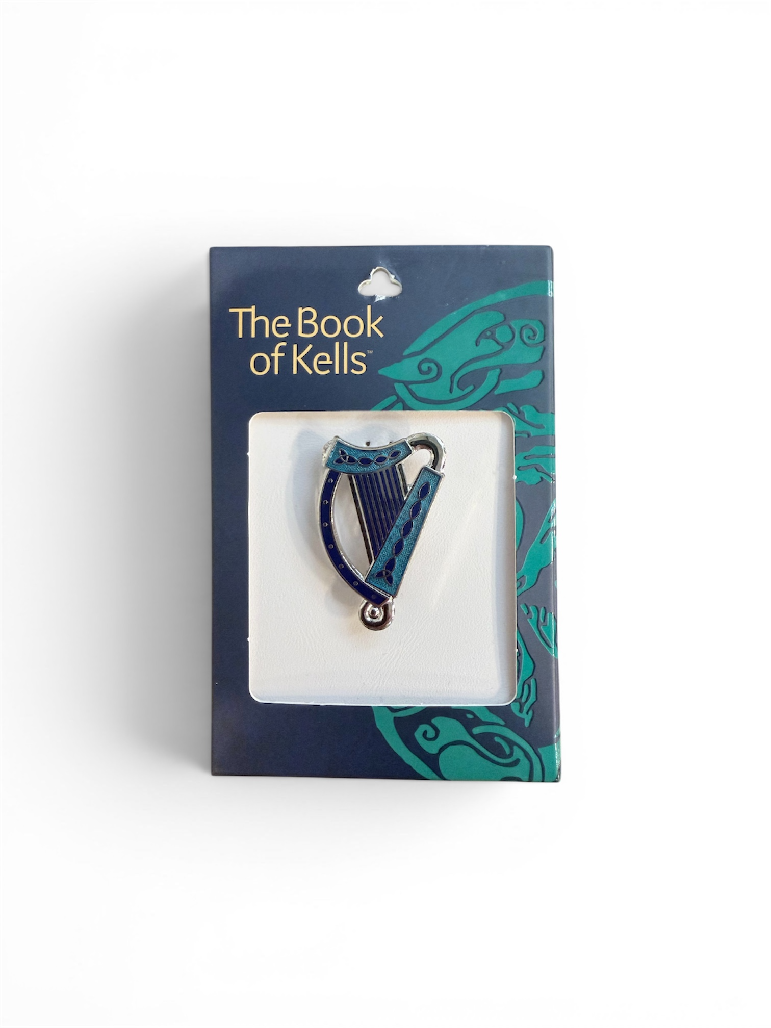 Inspired by the famous Book of Kells, this piece features the Irish Harp in Blue enamel and exquisite Celtic knot work. These brooches were thought to have been used to fasten capes worn by the Celts