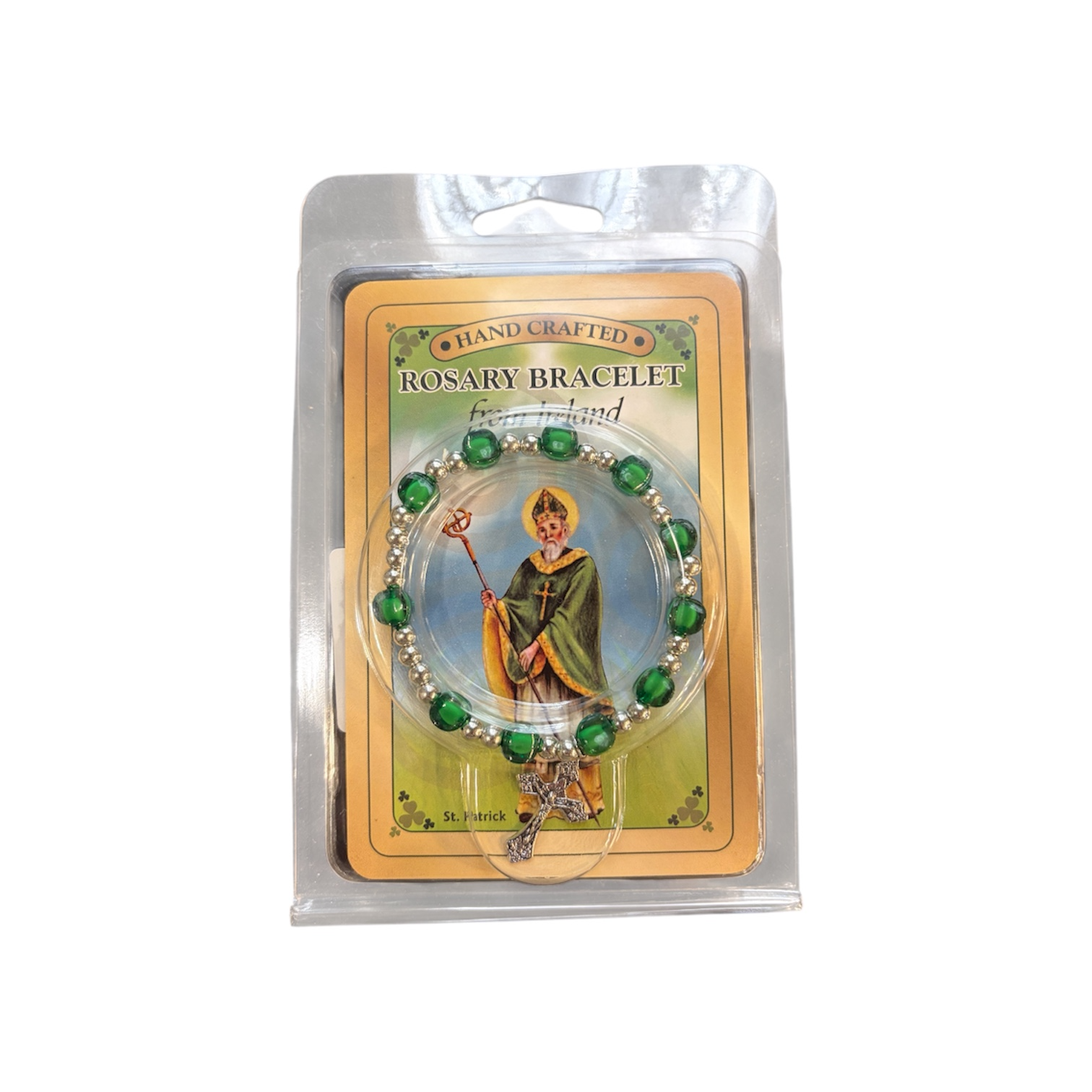 This single decade rosary bracelet features oval glass beads, a silver tone medal Celtic cross. This is a version of the little rosary ‘An Paidrin Beag’ used in Ireland during the penal days and is a convenient size to keep your rosary close to you every day.
