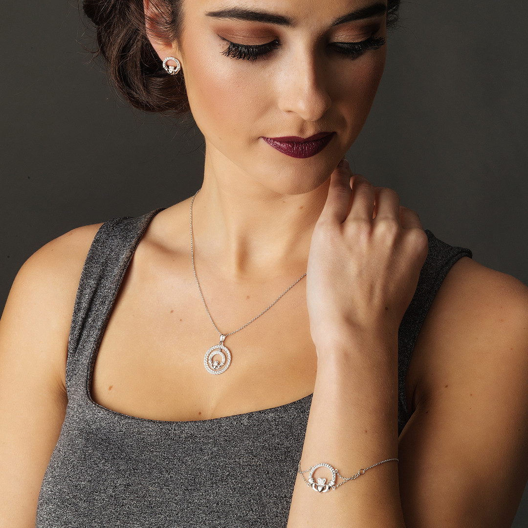 These beautiful earrings may be combined with the matching Claddagh Birthstone April Pendant