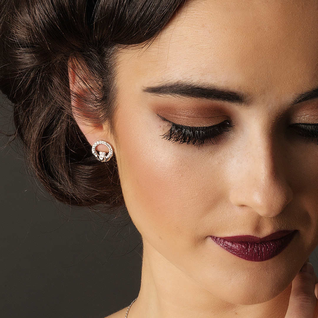 Sterling Silver Claddagh Stud Earrings Adorned With Swarovski Crystals – SW47