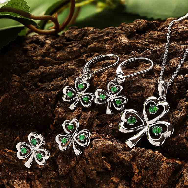 These beautiful earrings may be combined with the matching sterling silver Sterling Silver with Emerald Cubic Zirconia Shamrock Drop Earrings and Shamrock Green CZ Stones Silver Pendant